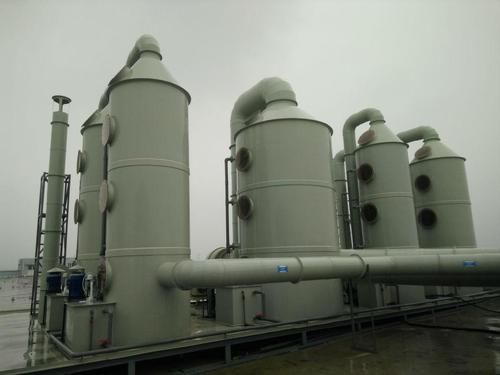 吸收塔是废气吸收的核心装置。相对于其他类型吸收塔,如填料塔、喷射鼓泡塔,喷淋塔具有结构简单、阻力小、投资小等优点。在吸收过程中,废气从吸收塔下部进入,在喷淋区与雾化喷淋的循环吸收剂逆流接触发生化学反应,废气中有毒、有害废气被吸收,同时废气中德粉尘也可以被去除。